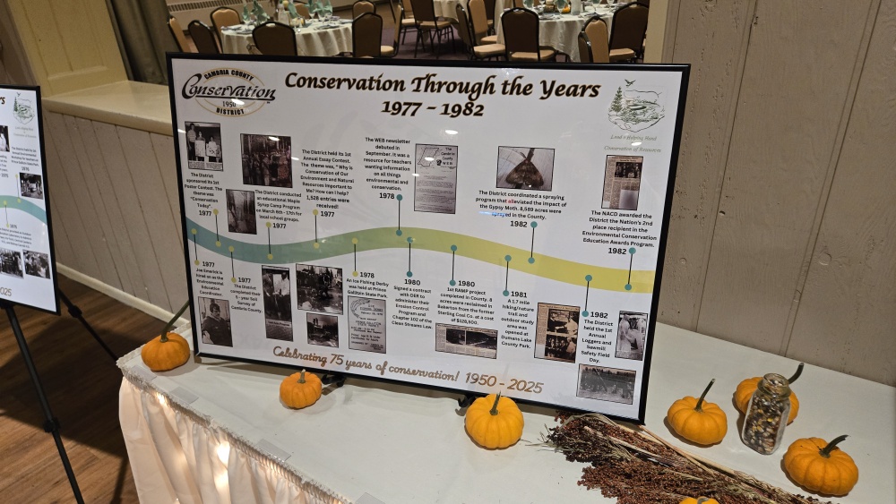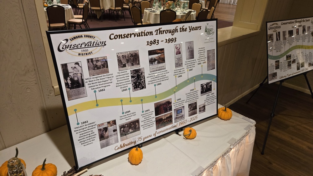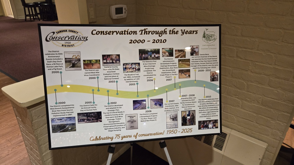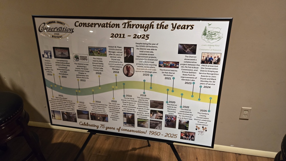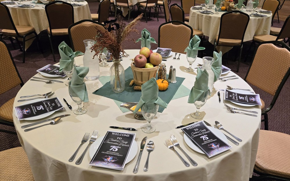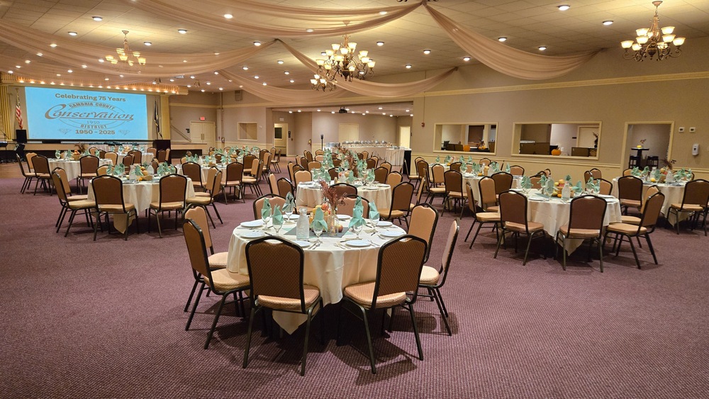 The Cambria County Conservation District’s 75th Anniversary Celebration was a warm and welcoming evening filled with community spirit, thoughtful décor, and pride in decades of environmental stewardship. Held at Ace’s Banquets & Catering, the event featured rich burgundy, gold, blue, and green accents that echoed the organization’s mission to protect local soil, water, and wildlife. Guests gathered to reflect on the District’s accomplishments, honor long-standing partnerships, and look ahead to future conservation efforts. The photos capture a celebration that was both elegant and heartfelt—an event that truly honored 75 years of dedication to preserving Cambria County’s natural resources.
