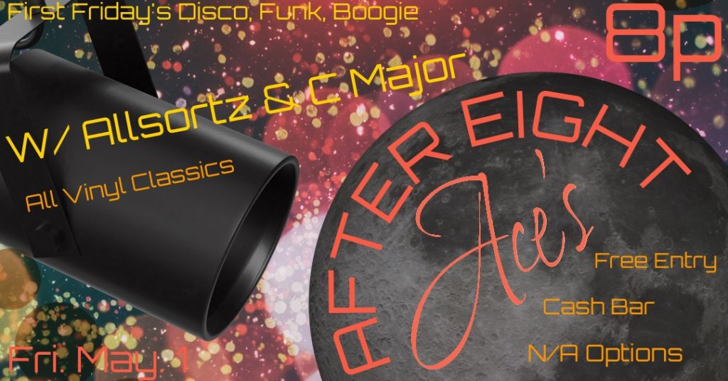 First Friday’s Disco, Funk, and Boogie experience featuring Allsortz & C Major spinning all-vinyl classics all night long. Join us Friday, May 1 for a feel-good evening of timeless grooves, free entry, a cash bar, and non-alcoholic options in a laid-back atmosphere made for dancing, vibing, and celebrating the sounds you love after 8