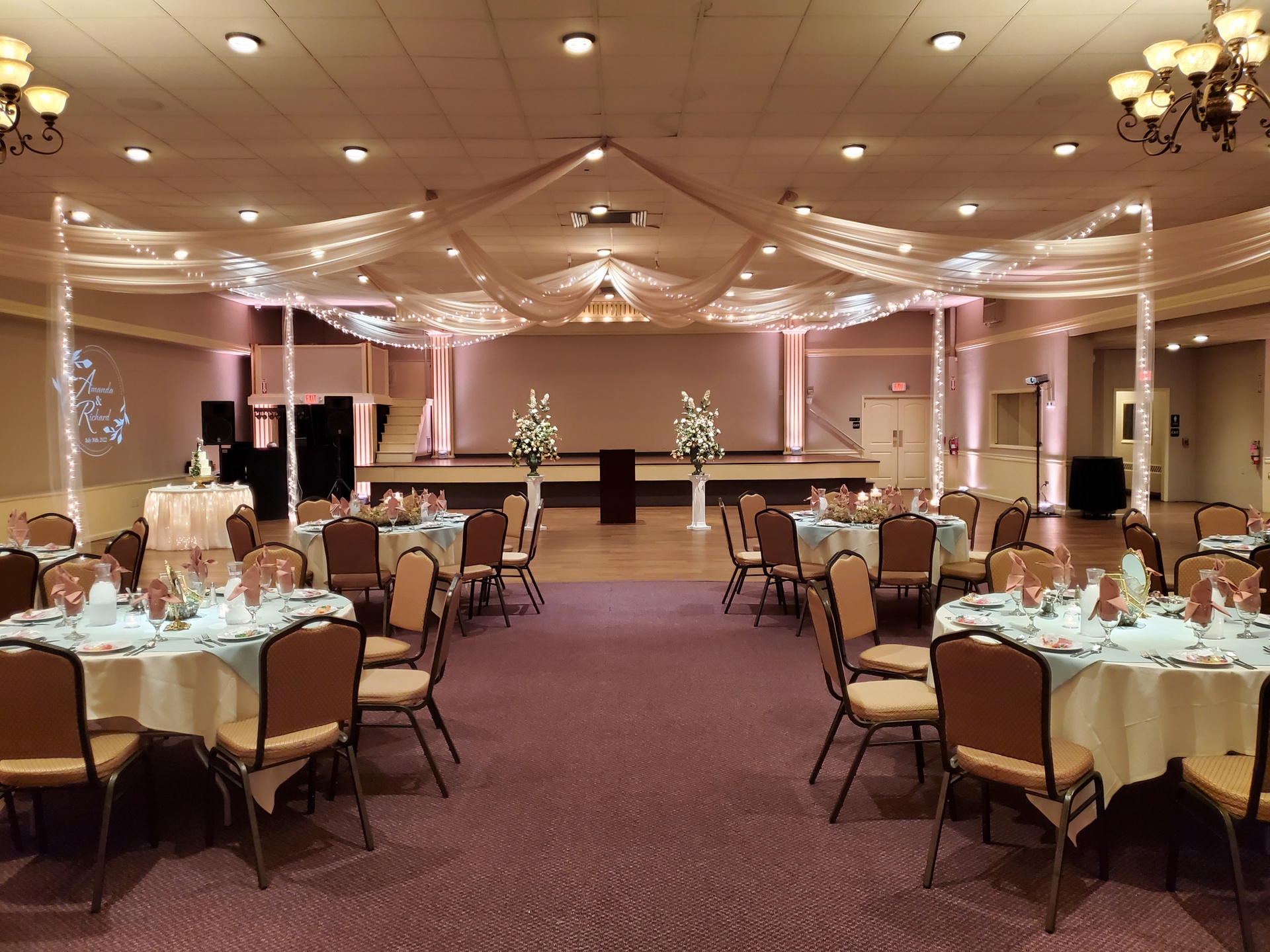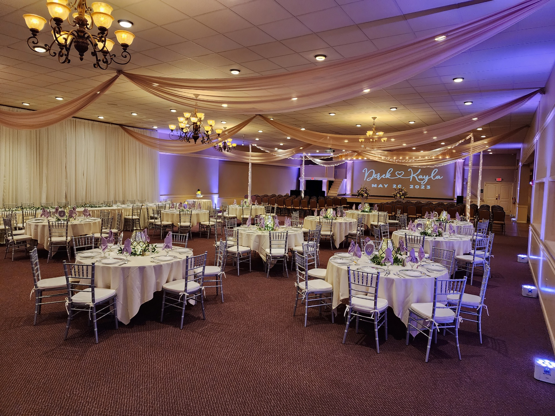 For the Maple Ballroom options, guests can move smoothly from ceremony to cocktail hour with very little downtime. As soon as the ceremony concludes, the bar opens, appetizers are served, and our staff quickly clears the ceremony chairs from the dance floor so the room can transition seamlessly into the reception.