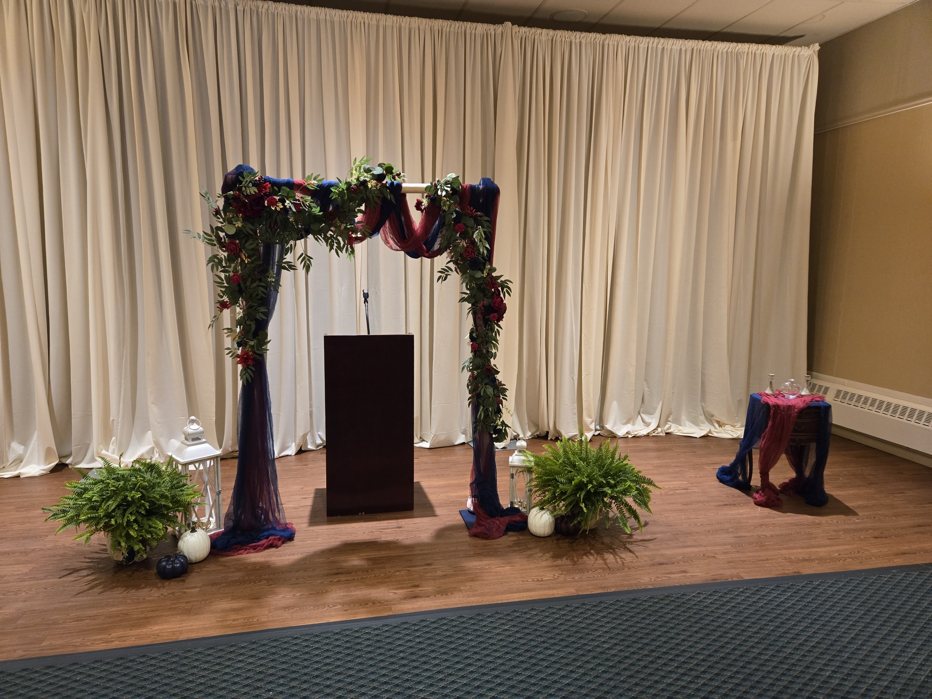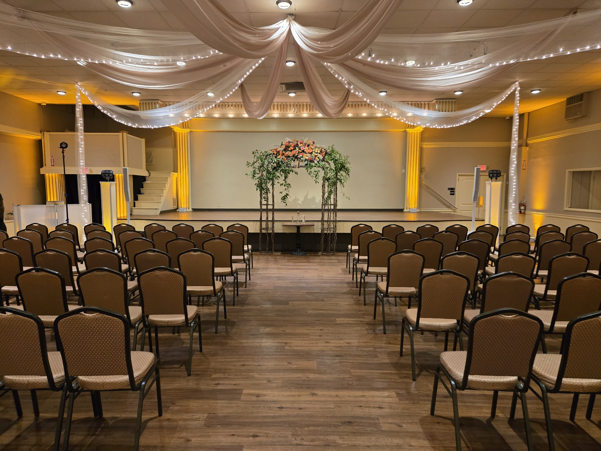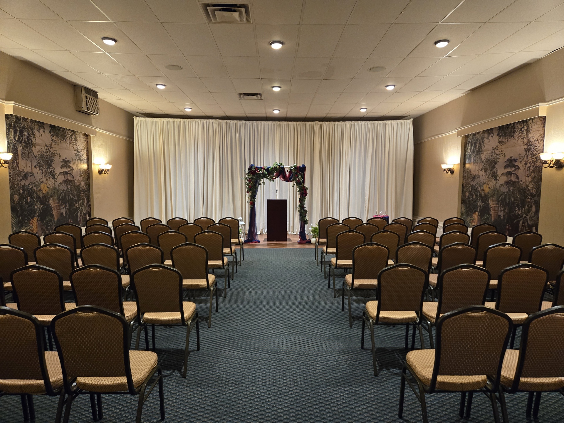 Our most streamlined ceremony option takes place right in the Maple Ballroom, allowing couples to make the most of the same beautiful space used for their reception. In this setup, the ceremony is held on the dance floor, with VIP seating available there if needed, while the remaining guests stay seated at their reception tables. This is a practical and cost-conscious choice that still creates a meaningful ceremony experience without requiring a room change.