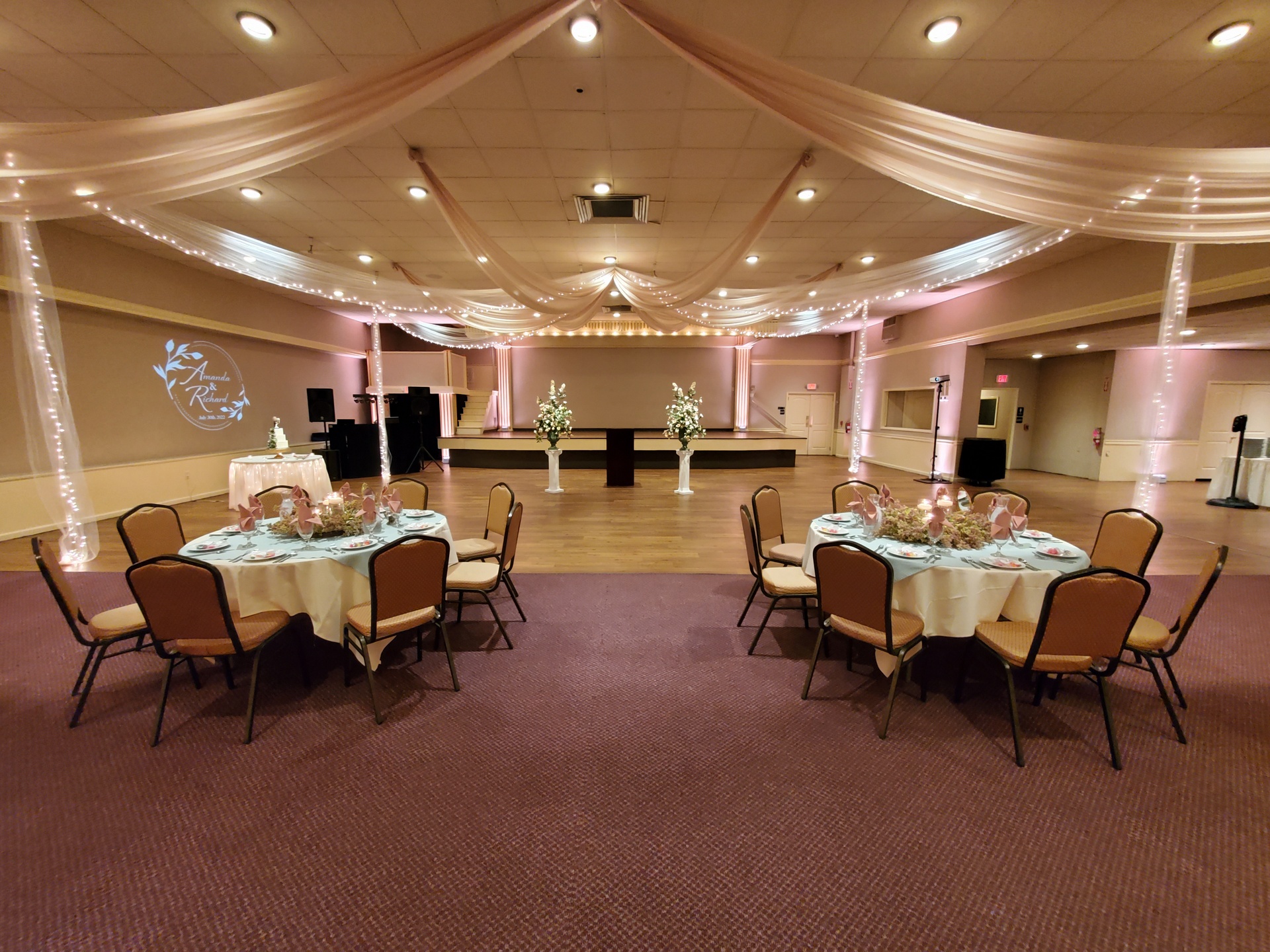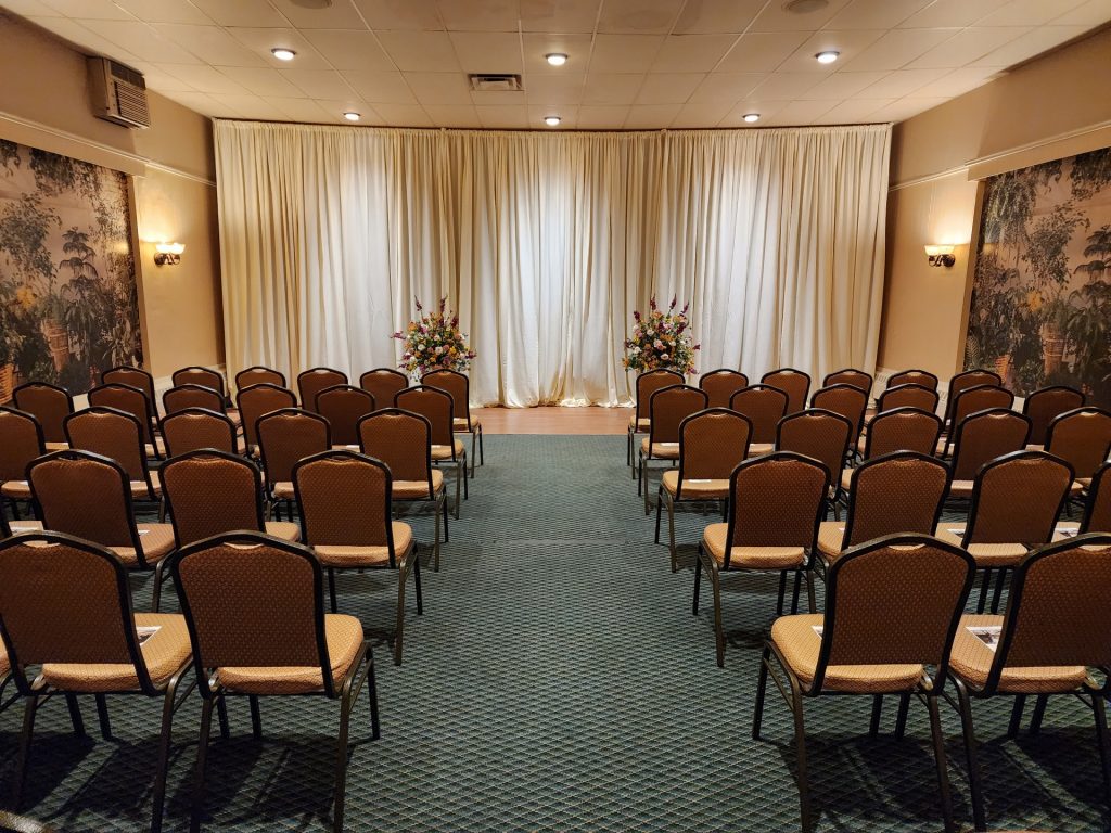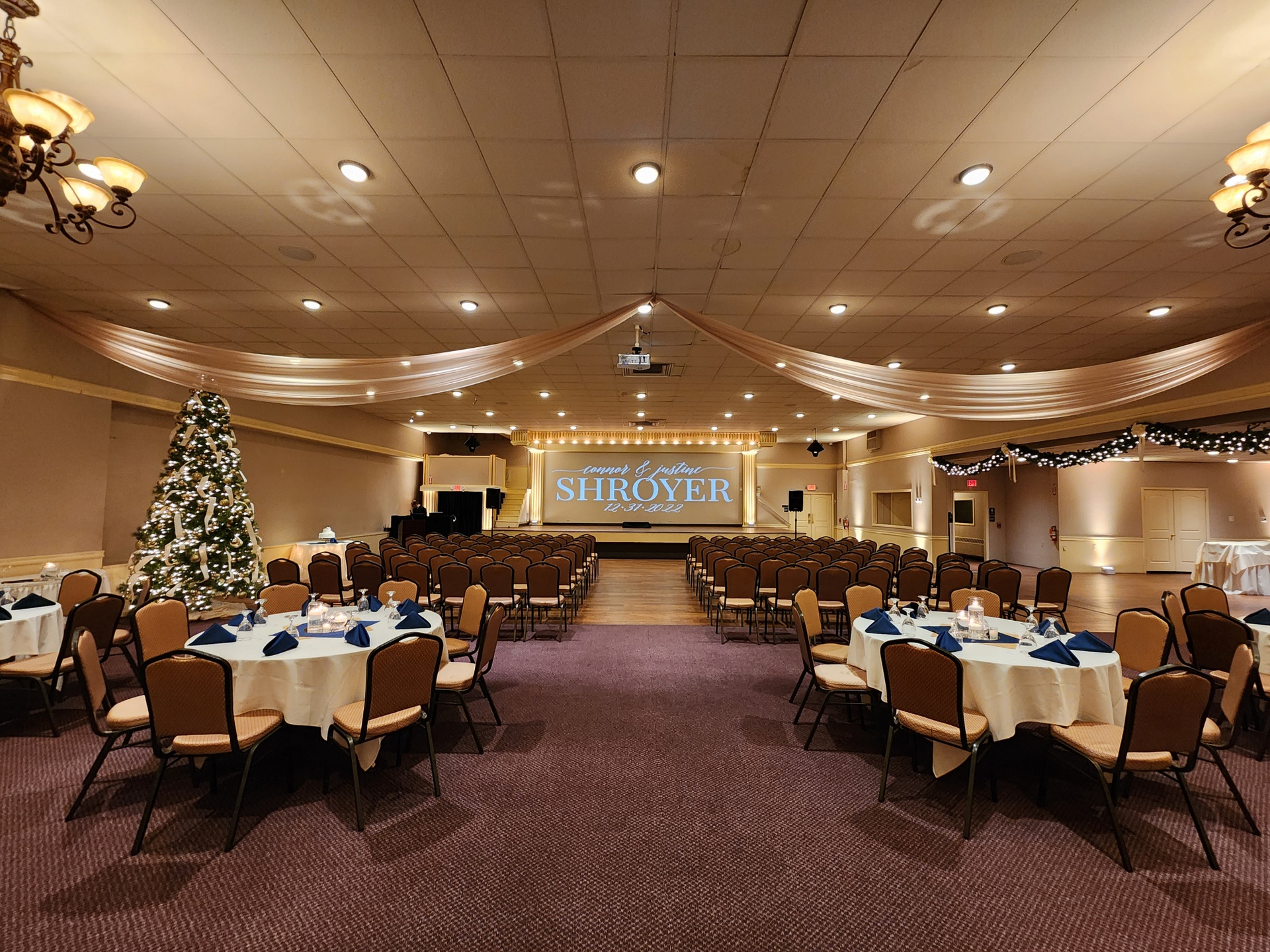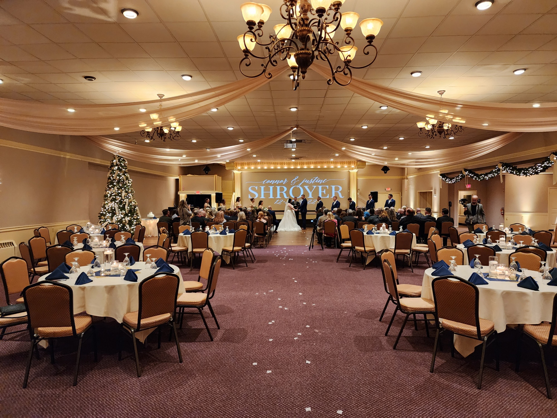 Our most streamlined ceremony option takes place right in the Maple Ballroom, allowing couples to make the most of the same beautiful space used for their reception. In this setup, the ceremony is held on the dance floor, with VIP seating available there if needed, while the remaining guests stay seated at their reception tables. This is a practical and cost-conscious choice that still creates a meaningful ceremony experience without requiring a room change.