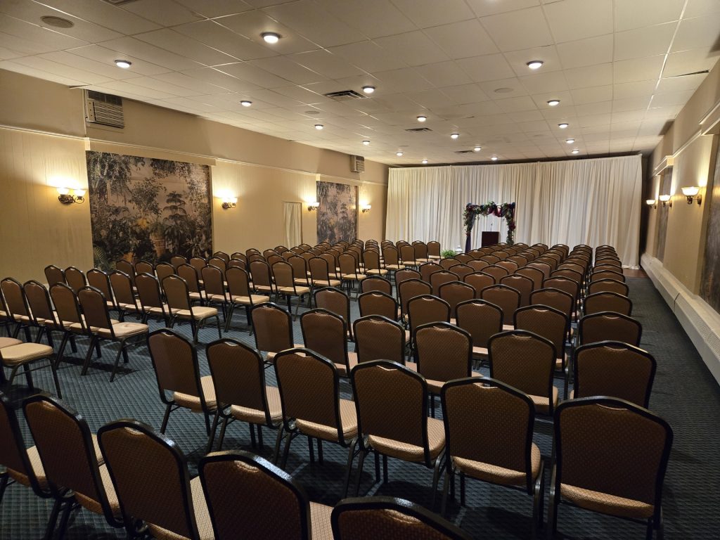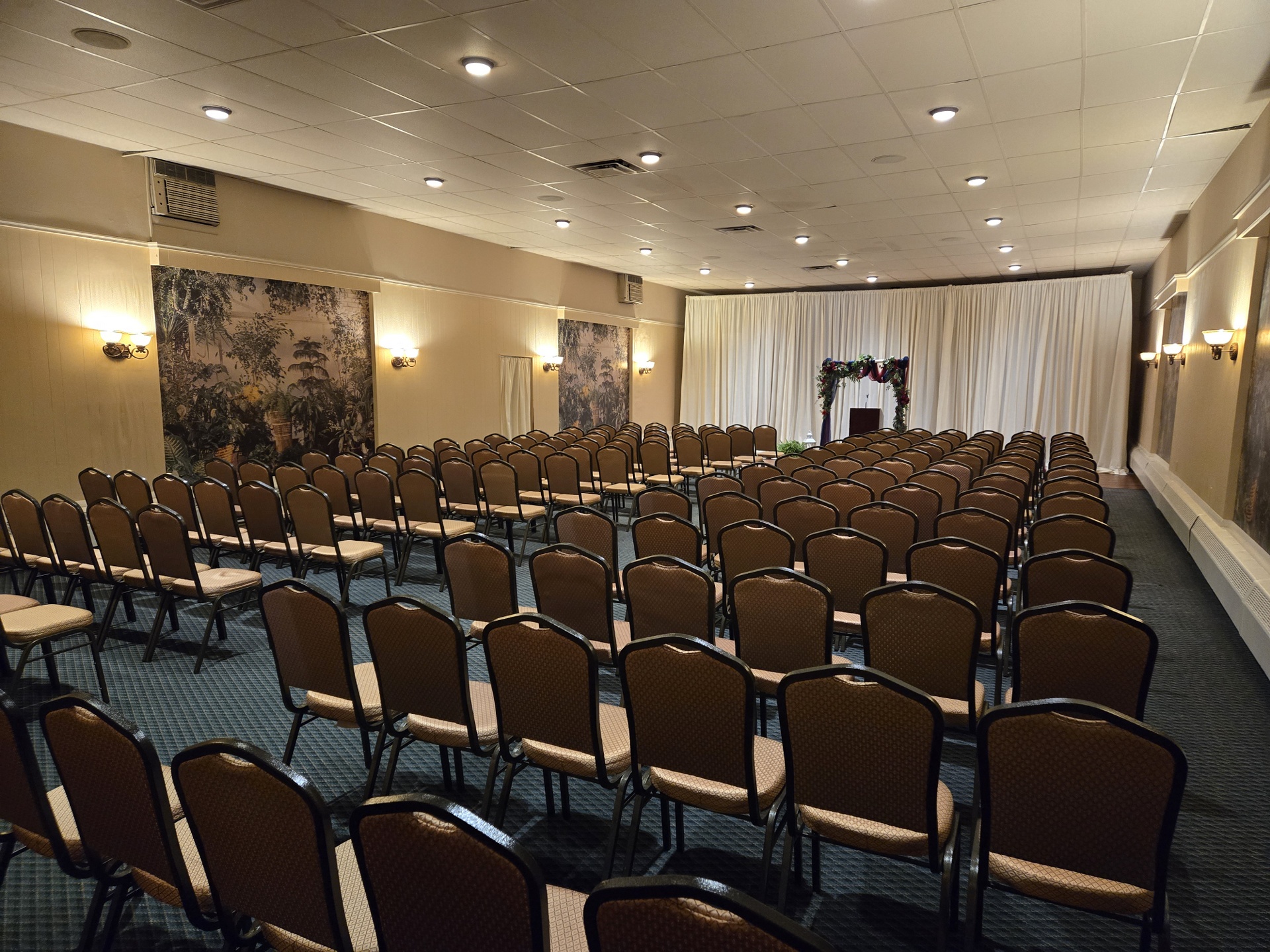 For couples selecting the Chestnut Room for their ceremony, guests may enjoy an intimate post-ceremony cocktail hour in the rear of the room, with beverage and food service available. Couples may also choose to have guests proceed directly to the Maple Ballroom for the reception immediately following the ceremony. As the Chestnut Room and Maple Ballroom are not connected by an interior passageway, guests would transition by exiting the Chestnut Room and entering the Maple Ballroom through the main front entrance. This arrangement still offers a graceful flow to the celebration while allowing couples to enjoy the charm of a separate ceremony setting.